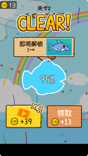 2、当鱼儿进入大海便可成功过关,然后还可以获得相对应的奖励。