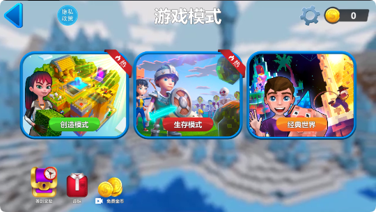 1、进入游戏后,一共有三个模式,可以选择自己喜欢的一个进行游戏。