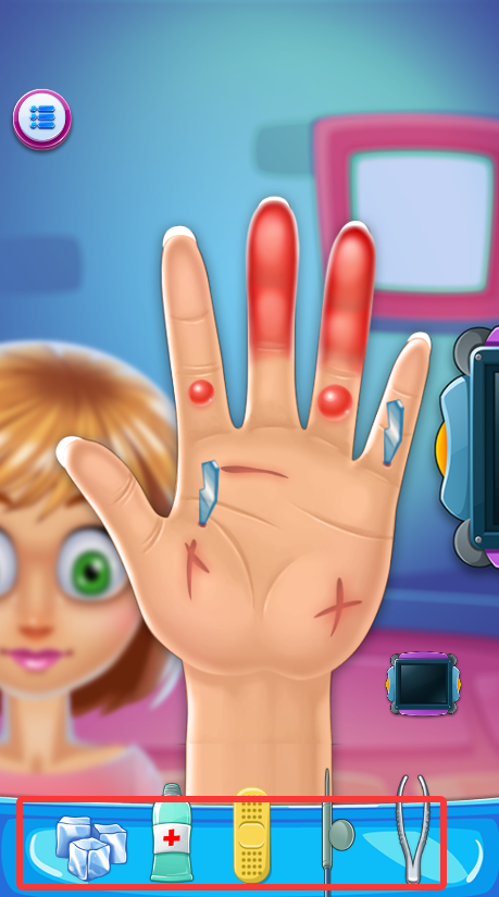 1、进入游戏后,首先需要仔细观察病人的症状表现,根据伤口类型选择正确的医疗工具进行消毒与清理。