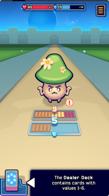 2、战斗时遵循二十一点机制,在不超过规定点数的前提下出牌。