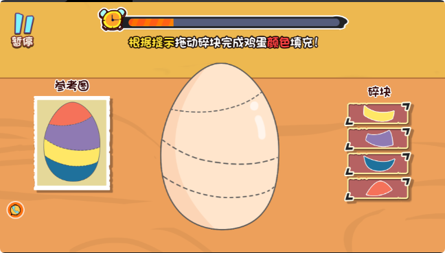 2、与关卡中的小动物展开对话,根据屏幕上的提示拖动碎片来完成鸡蛋的填充。