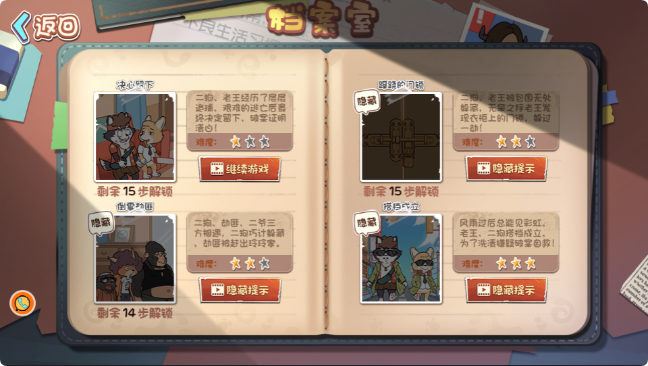 1、以动物侦探为主角设定,将解谜故事与动物角色相结合,打破传统人类侦探题材的常规,营造出新颖且富有趣味的解谜氛围。