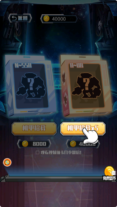 1、进入游戏后,直接点击机甲招募,收集不同类型的机甲单位。