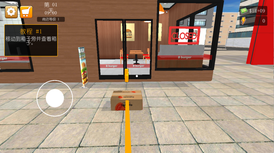 1、进入游戏后先熟悉基本操作,按照提示前往物资箱完成准备工作,再将店铺调整为营业状态。