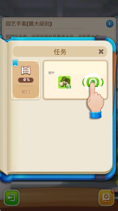 1、进入游戏后先完成前置剧情任务,再进入合并界面合成园艺手套,用于开启初始修复。