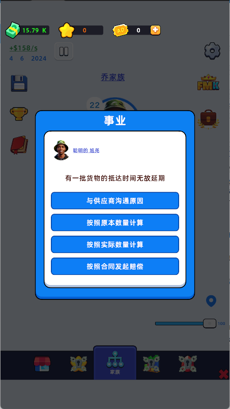 2、在遇到婚姻、事业、育儿等情境时,灵活选择不同选项,推动家族成长路线。