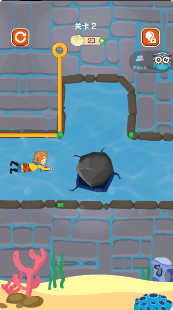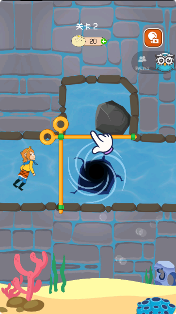 2、第二关需要先拉开横向的拉杆,让石块落下来堵住洞口。