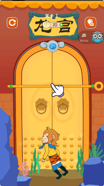 3、然后拉开竖向的拉杆,让孙悟空安全通过即可过关。