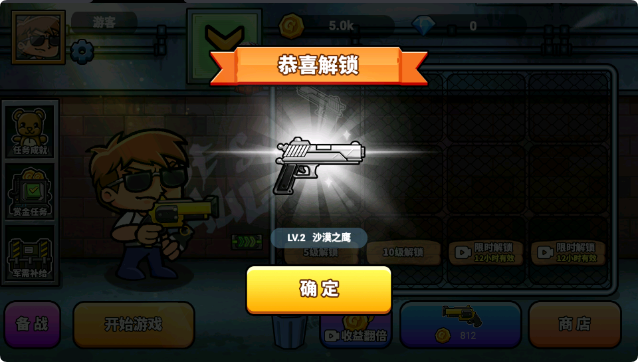 1、进入游戏后,需要先点击购买枪支,可以拖动相同等级的枪支来合成更高等级的枪支。