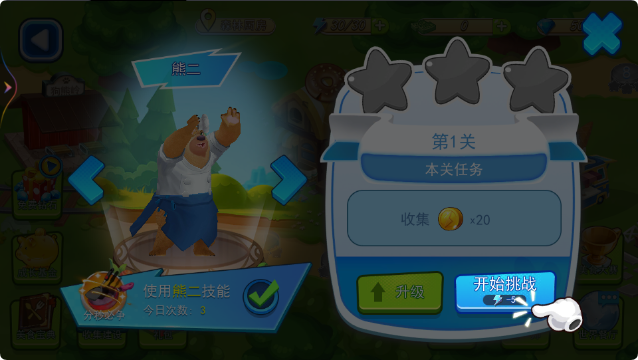 1、进入游戏后,选择关卡,点击开始挑战。