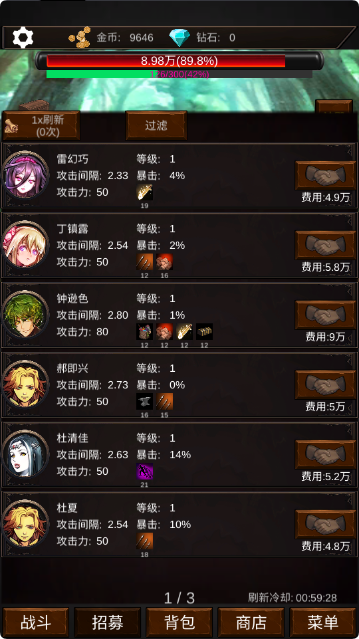 3、有足够的金币后可去招募勇者。