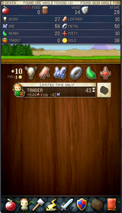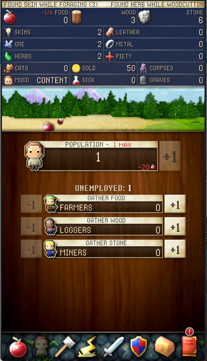 CivCrafter是一款像素风格的点击放置策略类游戏,融合了资源收集、建筑建造与军队扩张等多种元素。在游戏中需要通过点击获取食物、木材和石头等基础资源,并分配工人进行持续采集,保证文明的发展。随着住宅和建筑的增多,人口资源逐渐扩大,从而形成更高效的生产体系。通过不断积累资源,不仅能加工出皮革、金币等高级产物,还能招募军队扩展领地,解锁更多科技与能力,逐步建立起属于自己的强大文明。