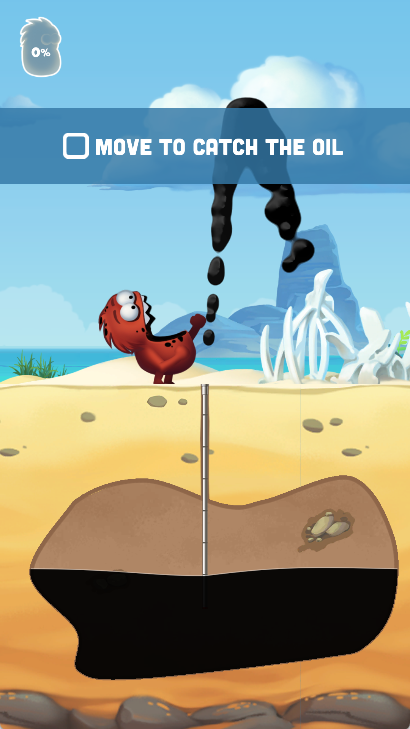 2、在石油喷出后,需要操控小怪物左右移动尽可能多地接住石油,避免资源浪费。