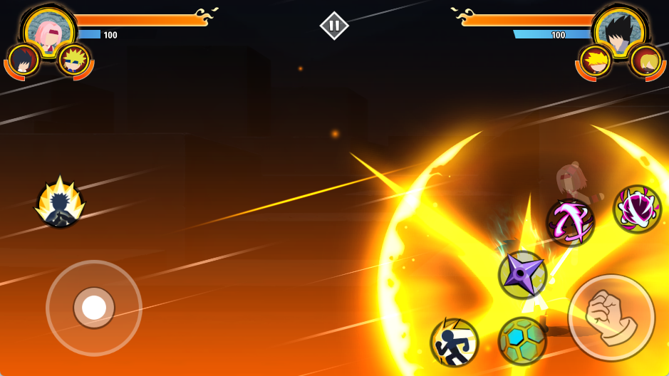 火柴人忍者3v3是一款热血刺激的动作格斗类手游,采用经典横版街机玩法,将火影忍者中的鸣人、佐助、卡卡西等人气角色以火柴人形象全新演绎。游戏中可自由解锁不同的忍者,组建三人小队展开激烈对战,每位角色的技能都高度还原原作设定。华丽炫酷的技能特效和畅爽的打击感,让对战过程紧张而精彩。通过跳跃、闪避、查克拉积蓄与大招释放,享受酣畅淋漓的竞技格斗体验。