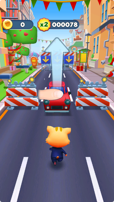 2、操作模式经典易上手,仅通过屏幕滑动实现角色全方向控制,无复杂操作门槛,能快速适应跑酷节奏,专注于闯关乐趣。