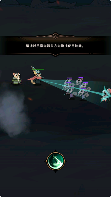 1、进入游戏后,通过手指向箭头方向拖拽使用技能。