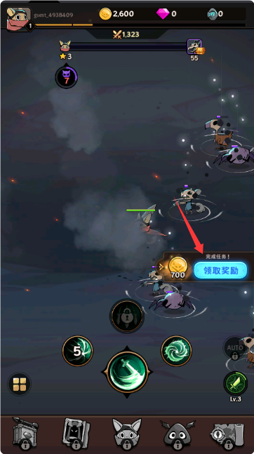 3、成功打败后完成任务,获取道具与金币,可用于商城购物。