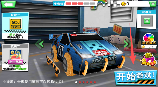 1、点击开始,发动引擎,开着炫酷跑车开启你的冒险之旅。