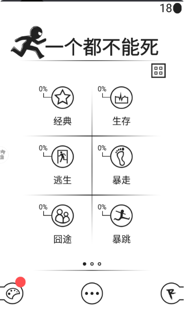 《一个都不能死官方版》是款魔性创意的休闲酷跑游戏,采用经典火柴人风格制作,拥有经典、生存、逃杀等14种模式,及普通、噩梦、地域、炼狱、魔域五大难度。游戏以精简纯手绘画风呈现,包含丰富关卡挑战,搭配手脑并行的抓狂系统机制与措手不及的虐心玩法,十分考验手速与反应能力。除经典玩法外,还有插花、蛋跳、逃生等玩法,超600个成就及丰富皮肤可解锁,内容充实有趣,能带来充足游玩体验。