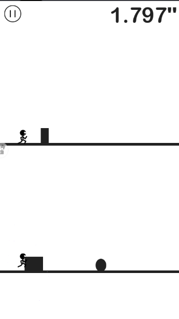 2、关卡开始后,依据酷跑场景变化,通过操作控制火柴人躲避障碍。