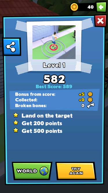 2、游戏场景与元素充满趣味性,街头跳水的设定新颖,圆环场地与高难度动作结合,兼具休闲性与挑战性。