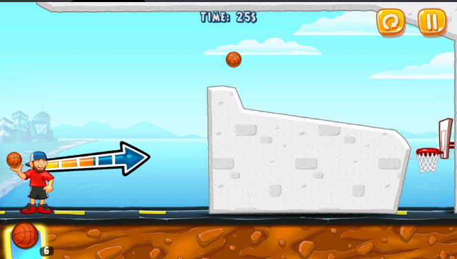 3、完成角度与力度调整后,点击左下角篮球完成投射,投中所有篮筐完成关卡。
