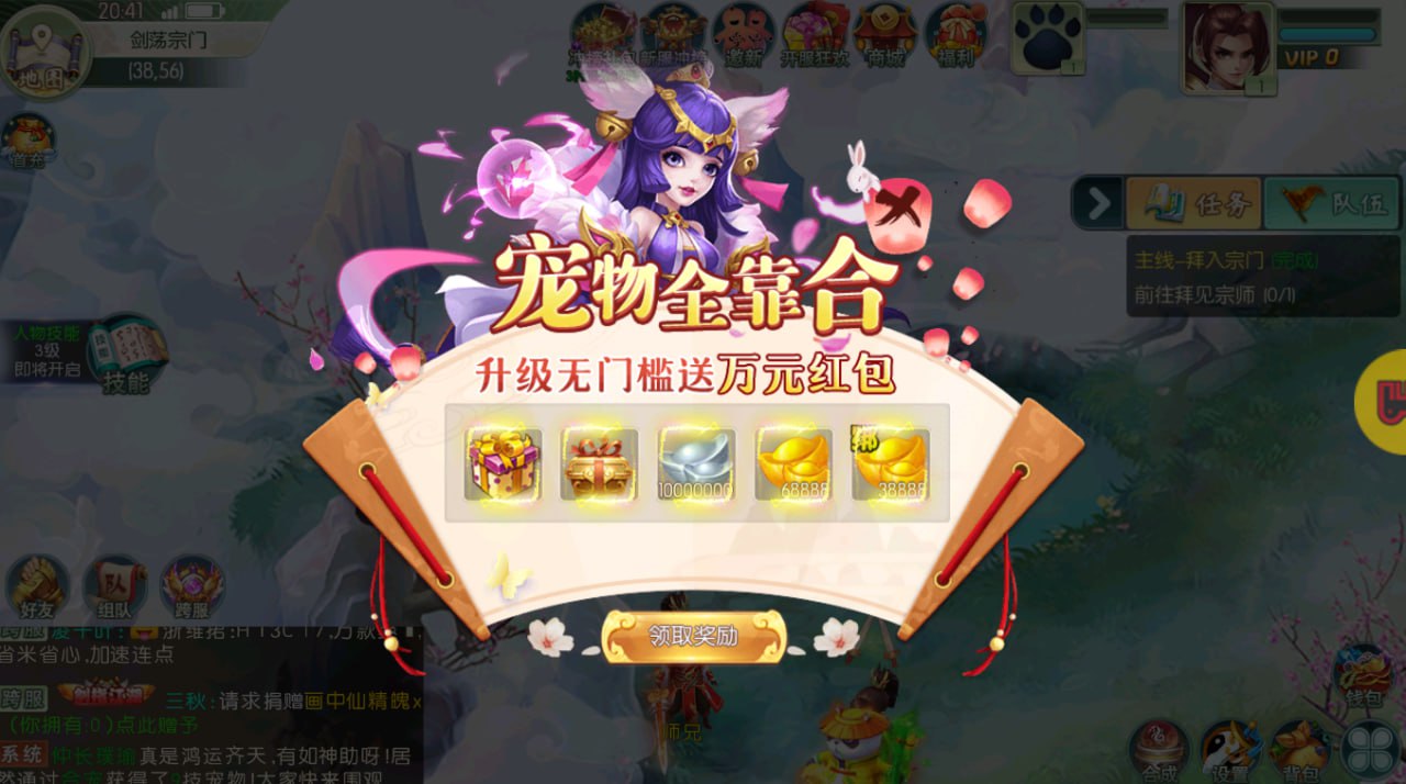 2、主角、宠物、仙童、坐骑等多元养成体系相辅相成,打造立体化战斗阵容。