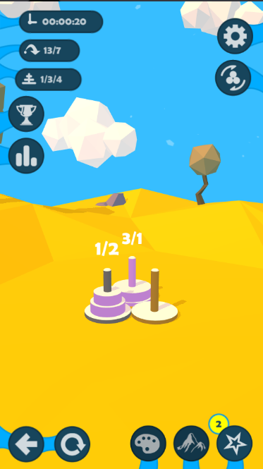 1、核心玩法经典独特,以圆块按规则在木杆间转移为核心,既考验逻辑思维,又因操作直观,形成独特的休闲体验。
