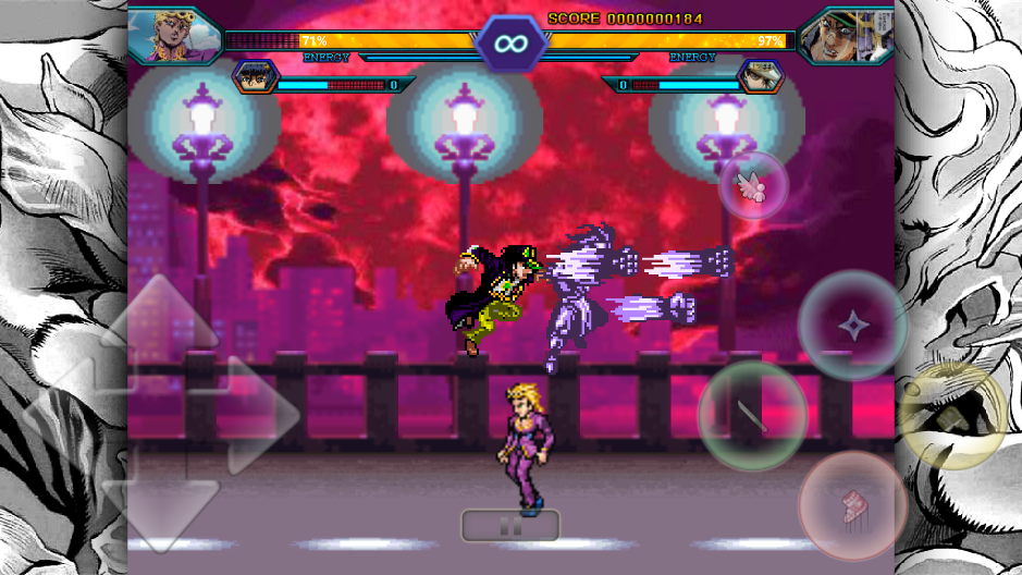 1、复古像素画风带来浓厚街机氛围,角色和场景均源自动漫原作精心还原。