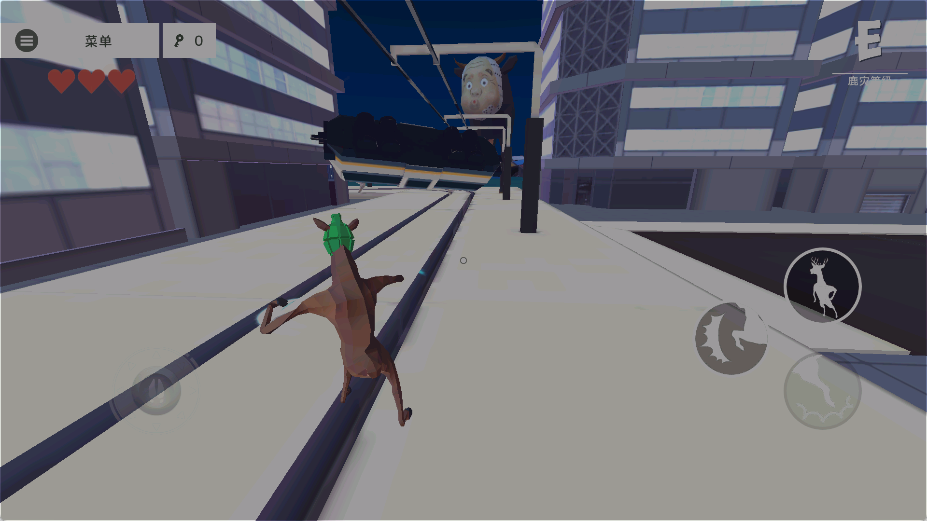 非常普通的鹿模拟器是一款魔性恶搞风格的高自由度沙雕游戏,以一只独特的鹿为主角,展开充满奇幻感与解压感的冒险。鹿不仅能伸缩脖子,还能把鹿角当成武器使用,带来无数出乎意料的操作。游戏采用低多边形卡通画风,色彩鲜明的建筑与细节设计让场景显得既简洁又宏伟。核心玩法主打自由探索与疯狂破坏,城市中的任何设施都能成为破坏目标。伴随通缉等级提升,还能解锁机甲与武器,最终进入未来世界,体验独特的奇幻战斗冒险。