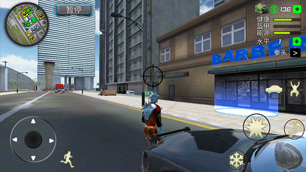 3、在城市中寻找黑帮目标,利用飞行与绳索能力自由穿梭,及时阻止犯罪活动。