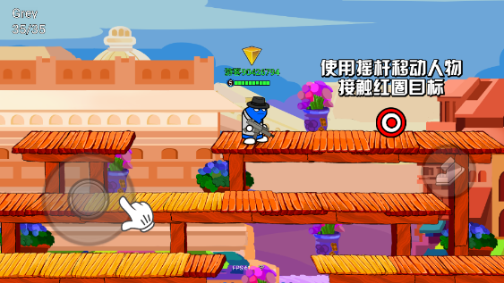 1、进入游戏后,选择关卡,使用摇杆移动人物接触红圈目标。