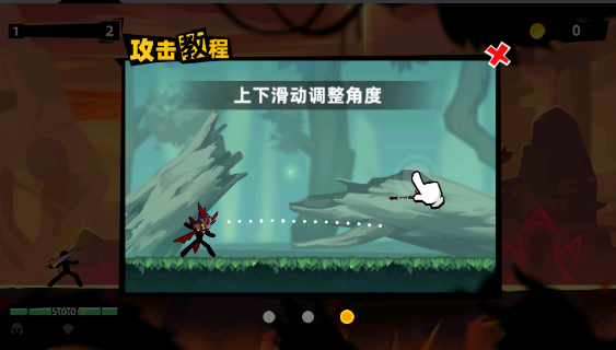 1、进入游戏后,了解滑动点击屏幕控制英雄战斗的基础玩法。