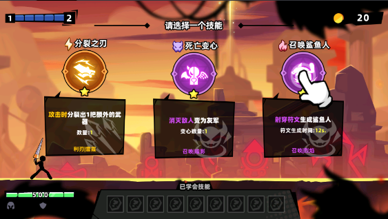 2、滑动屏幕以射击敌人,射击成功即可选择一个技能。