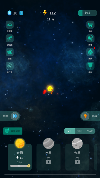 2、采用放置玩法让行星规律运转,无需持续操作,既降低操作负担,又能直观观察星球运转状态,感受宇宙的动态美感。