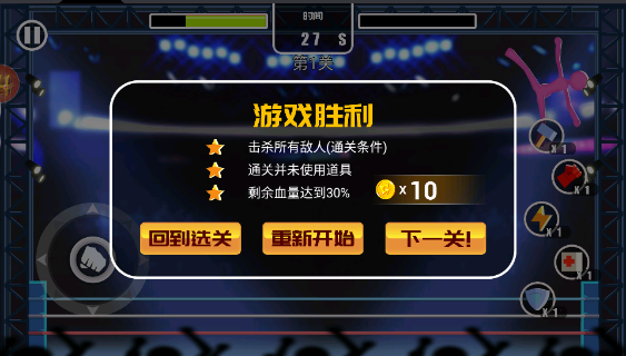 3、挑战过程中可借助道具火柴人轻松击败敌人、完成关卡。