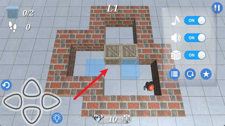 1、进入关卡后,先观察3D场景中的箱子位置、目标点位与角色可移动路径,根据 “只能推不能拉” 的规则,初步规划推箱顺序(优先推动阻挡关键路径的箱子)。