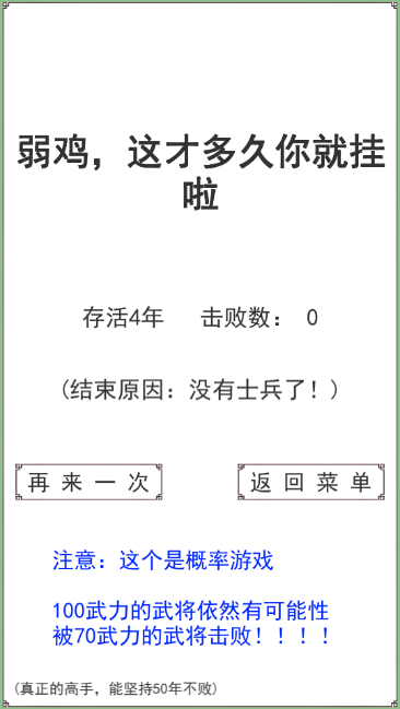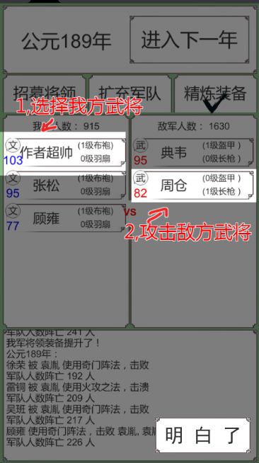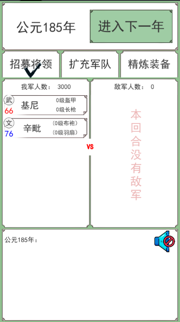 2、进入一下年,可招募将领、扩充军队和精炼装备。