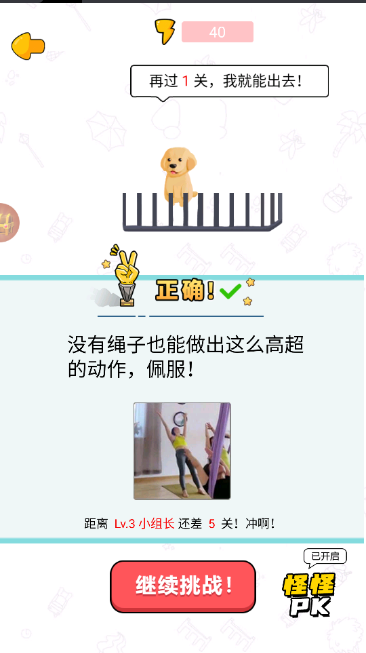 3、若回答正确则成功闯关,错误则需应对时间加速减少的情况。