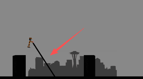 3、你的任务就是帮这位老兄目测两堵高墙的间距,用木棍当桥,上演一场惊险的撑杆跳跃。