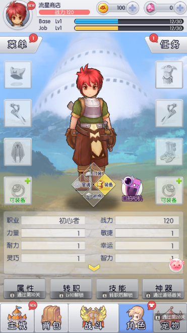 1、进入游戏后,创建角色并熟悉放置玩法。