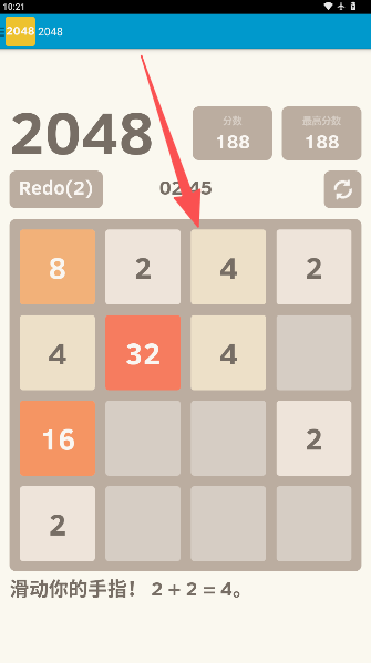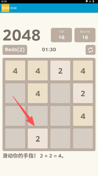 2、开局只有2或4,用手指上下左右一划拉,数字们就会靠拢,同时冒出新的小伙伴。