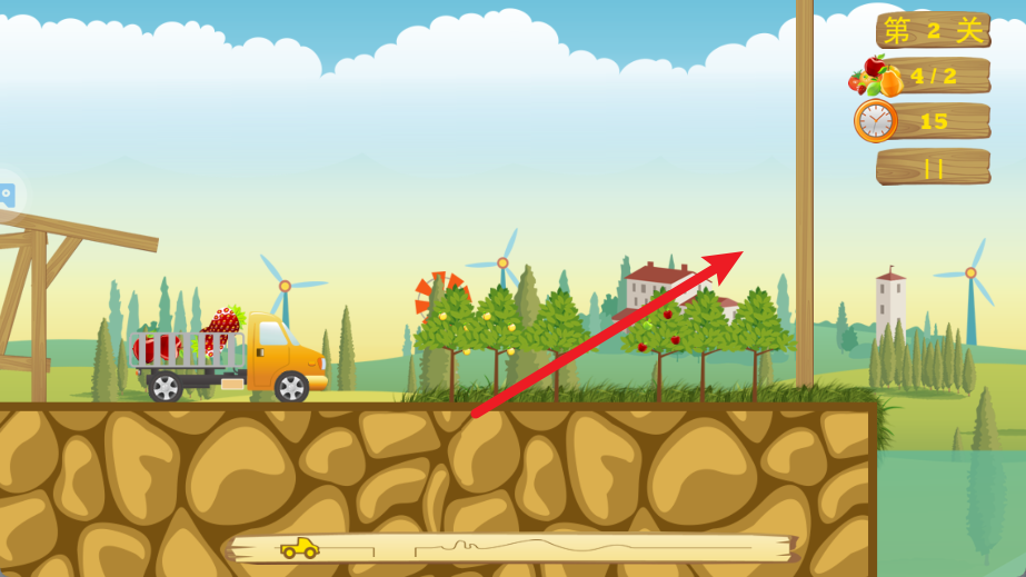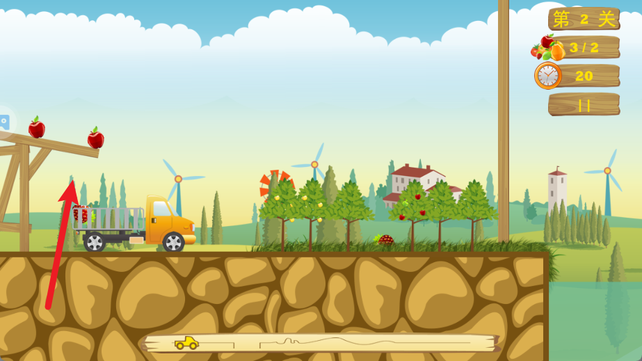 2、目标导向清晰,“限时 + 定量 + 低损耗” 的通关要求,既设定明确目标,又通过 “高分激励”(水果掉落少 = 得分高)提升游戏粘性,每一次运输都有明确的优化空间。