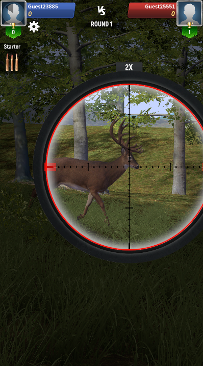 1、进入游戏后,等待猎物出现时点击屏幕放大倍镜,利用瞄准镜精确锁定目标。