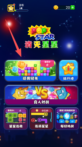 1、进入游戏后,先挑个你喜欢的模式,是经典闯关还是限时挑战,全由你定。