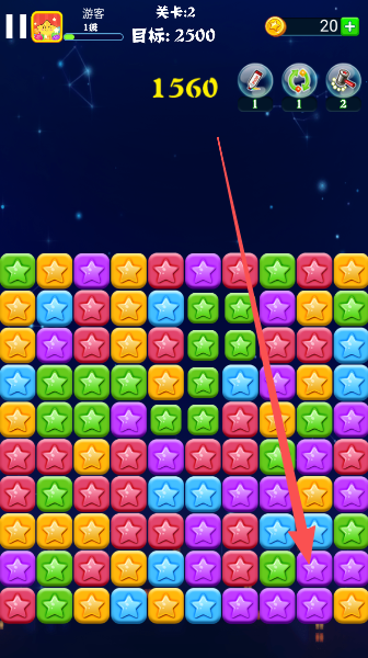 2、用手指点点相同颜色的星星,它们就会连在一起消失,一次性点得越多,分数就像坐火箭一样往上涨。