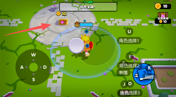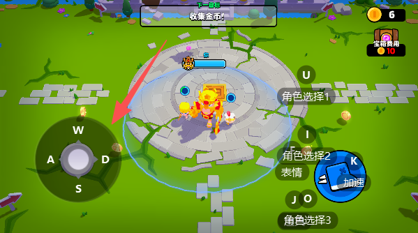1、左手摇杆控制角色满地图溜达,看见金光闪闪的金币和宝箱,千万别客气。