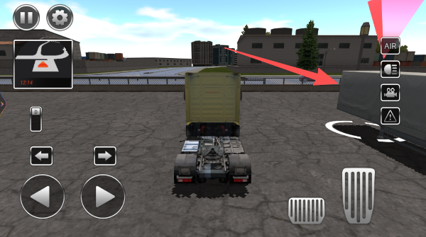 2、左手控制方向,稳稳地把卡车倒过去,和货箱精准对接,成功挂上。