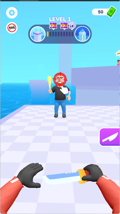 1、进入命中大师3D飞刀刺客后等待加载,锁定敌人目标,瞄准进行飞刀投掷攻击。