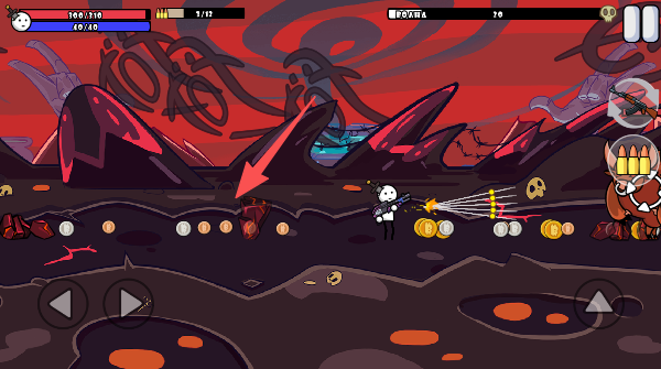 1、先盯紧头顶的血条和金币数,然后猛戳左下角的攻击键,教训一下周围不长眼的小怪物。
